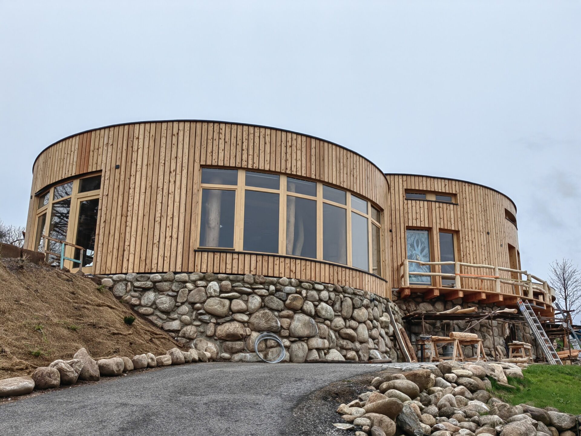 Obložení ošetřené konopným olejem na stavbě z prefabrikovaných panelů z Hempcrete