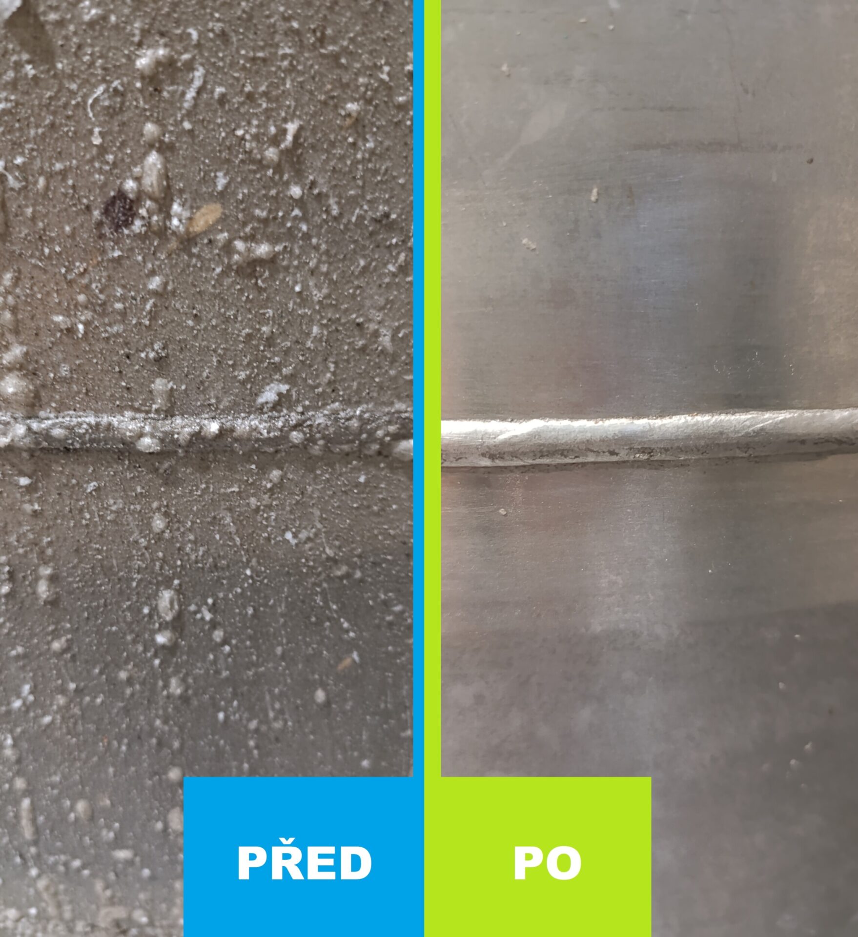 Proces zajišťuje odstranění mastnot, prachu, zbytků starých nátěrů a jemné povrchové oxidace bez narušení samotného kovového povrchu.